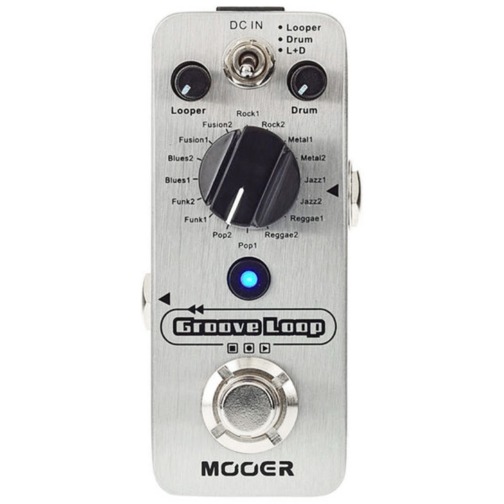 The MOOER GROOVE LOOP brings together both the MICRO LOOPER and MICRO DRUMMER into one micro pedal, for the ultimate in a portable jamming companion. Both elements can be used independently from one and other or simultaneously.